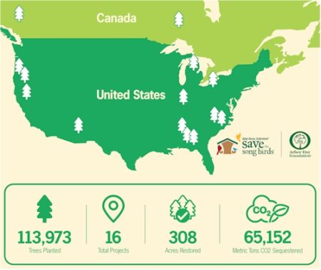 Wild Birds Unlimited is proud to partner with the Arbor Day Foundation to plant thousands of native trees across the U.S. and Canada. Trees provide shelter and places for birds to build nests. Trees are also home to a wide variety of insects, an essential element that many bird parents need to successfully raise their young.